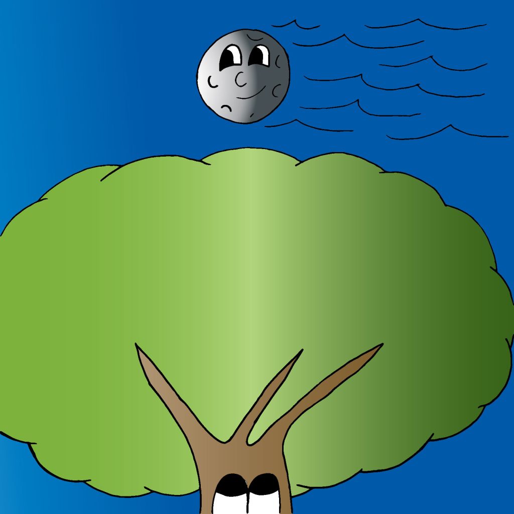 Oak sees the moon swim through the sky.